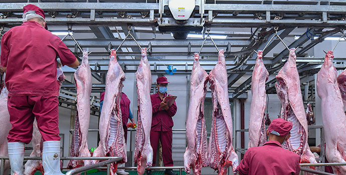 為保證生豬質量,公司堅持從源頭抓起,同國內多家大型牧業公司、生豬養殖合作社簽訂了長期戰略合作協議,生豬合同化供應率達到80%...
